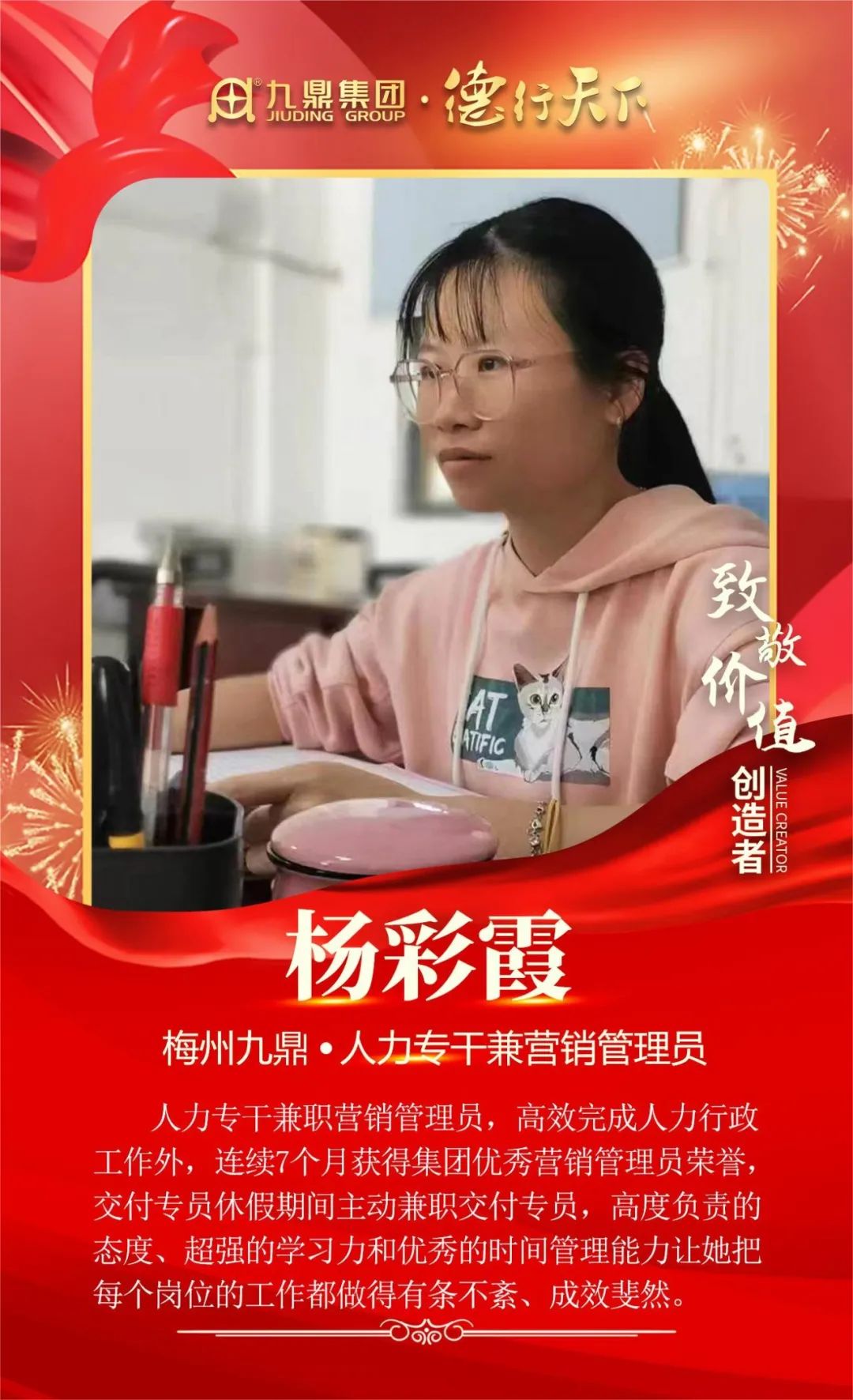 用汗水澆灌收獲,以實干篤定前行。為大力弘揚九鼎文化,鼓舞激勵廣大九鼎人學習標桿、趕超先進,集團總部組織開展了“致敬價值創(chuàng)造者”勞動模范評選。經(jīng)嚴格篩選考察,授予楊家茂等30名員工2023年度“勞動模范”稱號。