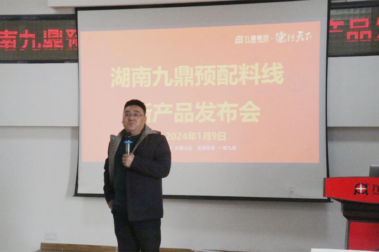 2024年1月9日清晨,岳陽新港區(qū)九鼎研究院三樓會議室熱鬧非凡,一場振奮人心的盛會拉開了帷幕。預(yù)配料線年會及新產(chǎn)品發(fā)布會聚集了各營銷公司的精英,座無虛席,見證了預(yù)混料新產(chǎn)品的盛大亮相!